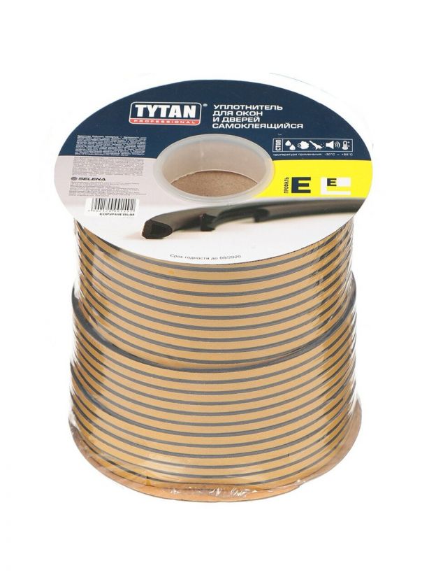Уплотнитель E, самоклеящаяся основа, 9х4 мм, 150 м, черный, Tytan, 91515