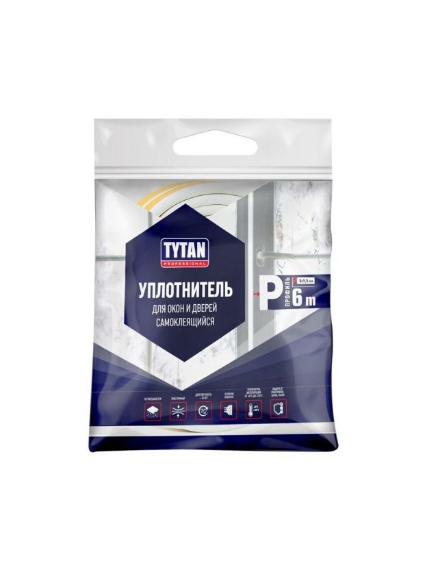 Уплотнитель P, самоклеящаяся основа, 9х5.5 мм, 6 м, черный, Tytan, 19880