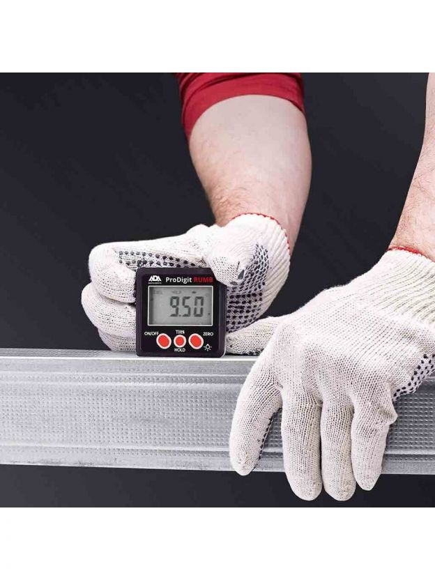 Уровень электронный ADA ProDigit RUMB позволяет быстро и точно определить угол отклонения поверхности от горизонта или вертикали. Достаточно установить прибор на поверхность или прикрепить к вертикальной конструкции, и он покажет на дисплее не только угол отклонения, но и его «направление».
