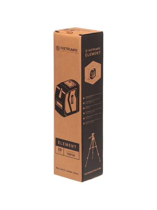 Лазерный уровень (нивелир) Instrumax ELEMENT 2D — компактный лазерный уровень с широкими возможностями. Предназначенный для работ внутри помещений и на улице. ELEMENT 2D строит 1 вертикальную и 1 горизонтальную линии пересекающиеся под прямым углом.