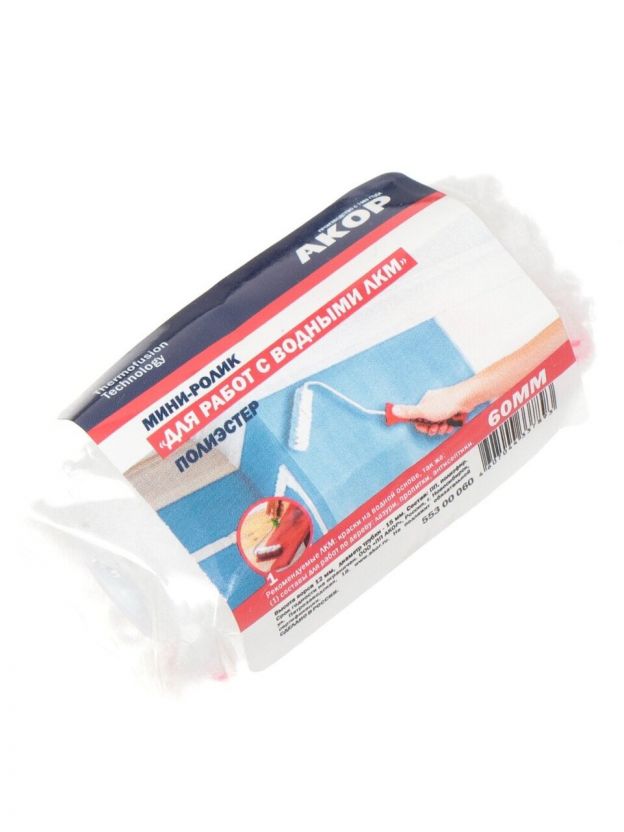 Валик малярный Акор, Мини, полиэстер, 60 мм, 553 00 060
