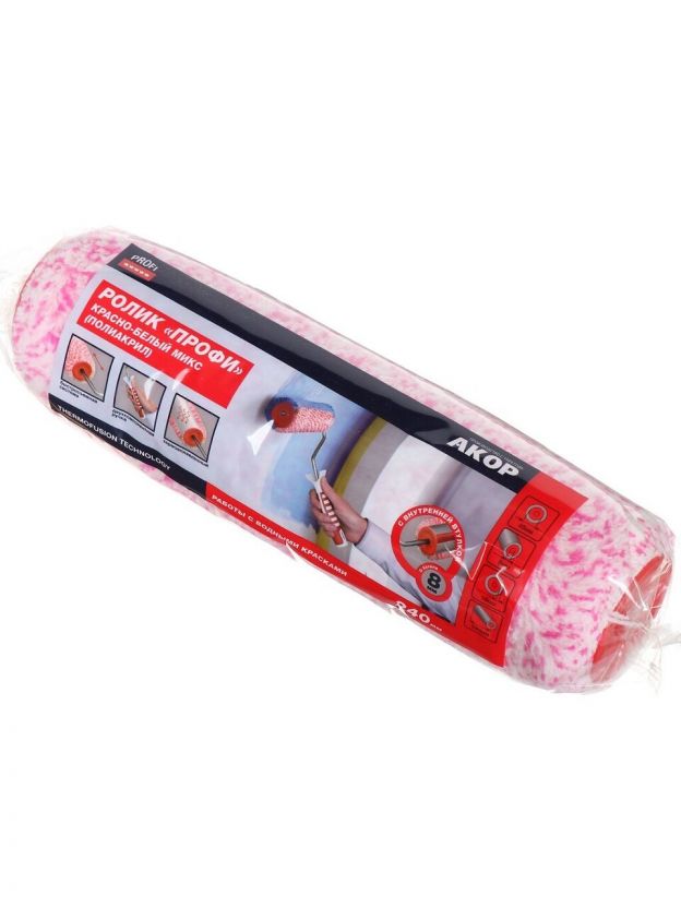 Валик малярный Акор, Профи, полиакрил, 240 мм, красно-белый, 254 48 024