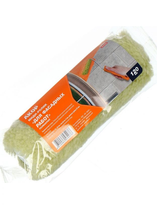 Валик малярный для фасадных работ, Акор, Миди, полиакрил, 120хдиаметр 25 мм, ворс 12 мм, 855 00 120