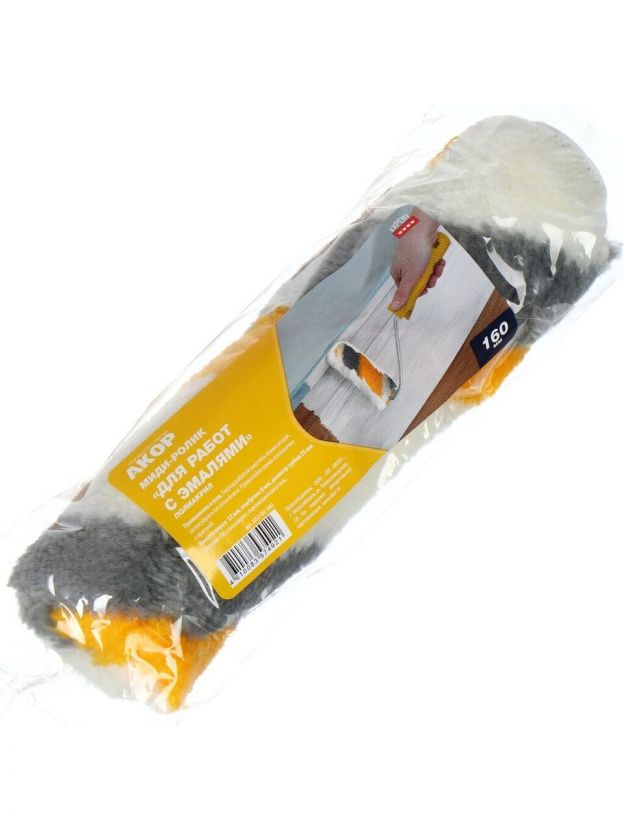 Валик малярный для работ с эмалями, Акор, Миди, полиакрил, 160хдиаметр 25 мм, ворс 12 мм, 852 00 160