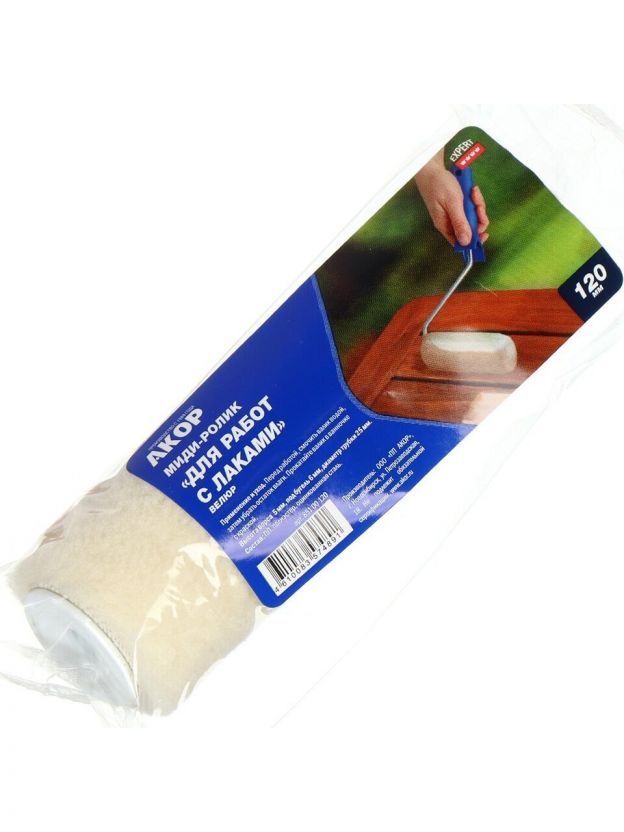 Валик малярный для работ с лаками, Акор, Миди, велюр, 120хдиаметр 25 мм, 5 мм, 851 00 120