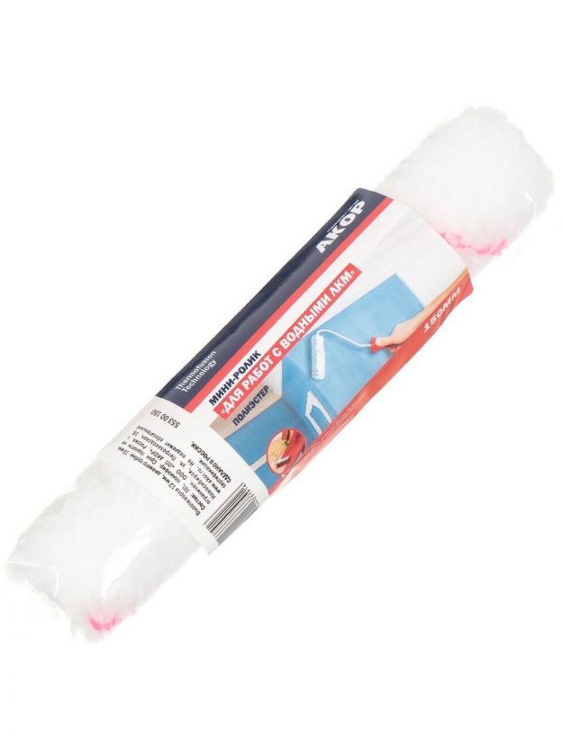 Валик малярный для работ с водными красками, Акор, Мини, полиэстер, 150 мм, 553 00 150