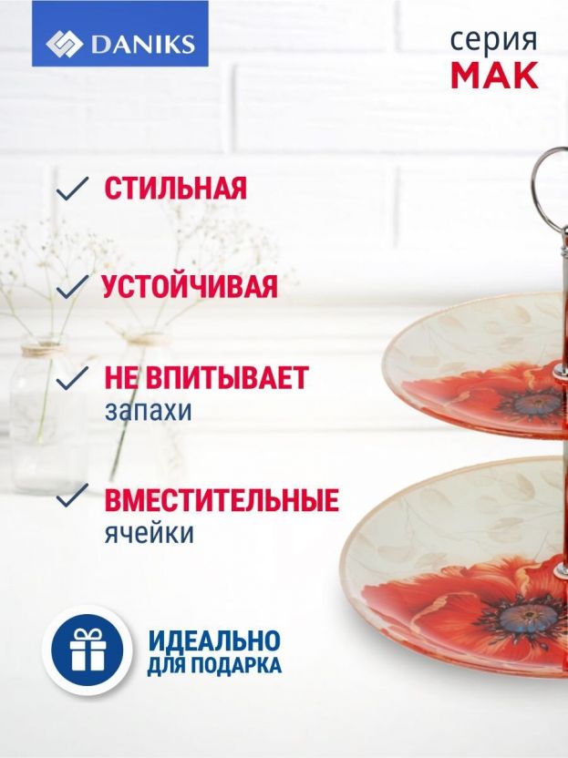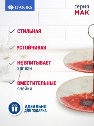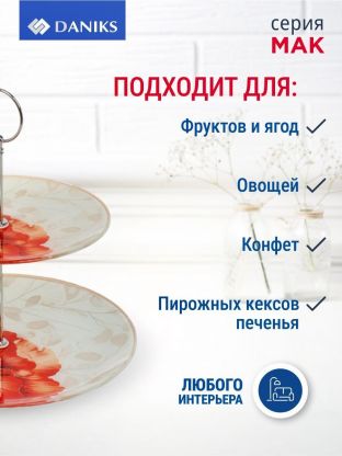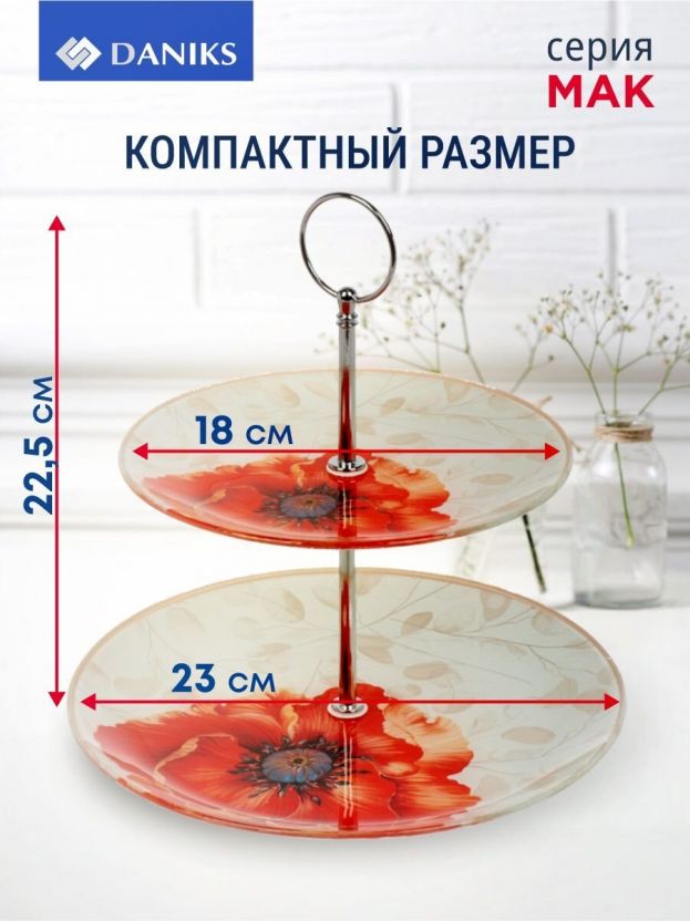 Ваза для фруктов, 2 яруса, стекло, 22.5 см, 18см, 23 см, Daniks, Мак