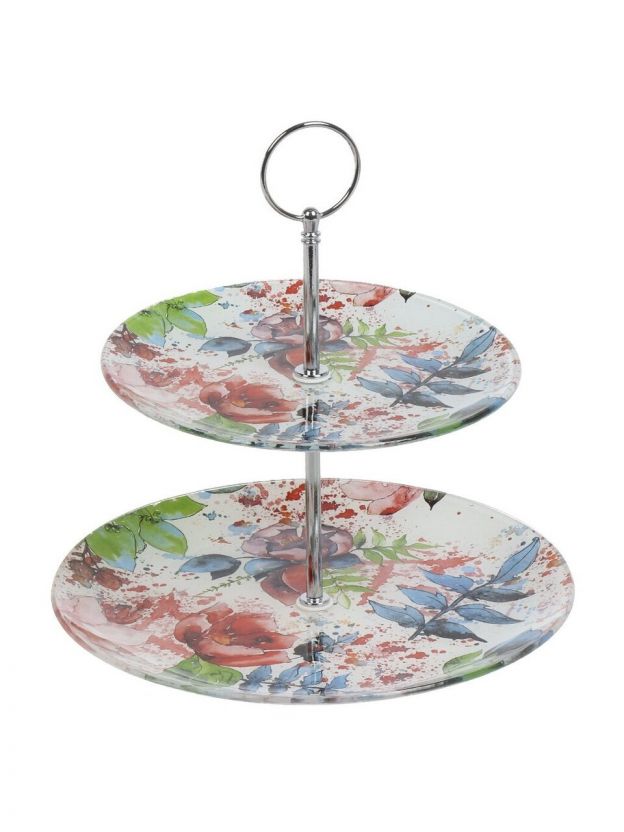 Ваза для фруктов, 2 яруса, стекло, 22.5 см, диаметр 18 и 23 см, Daniks, Нежность