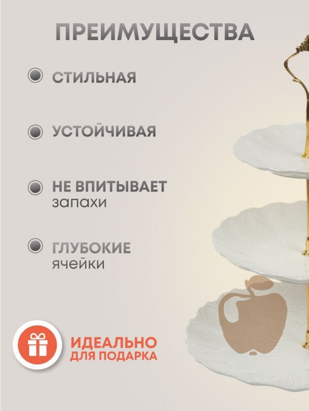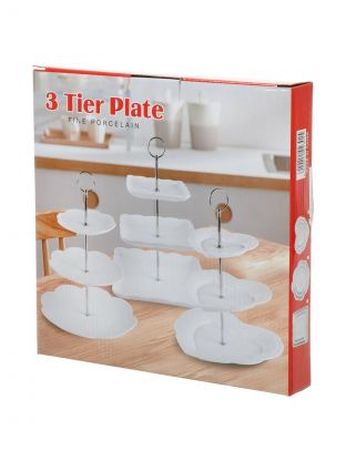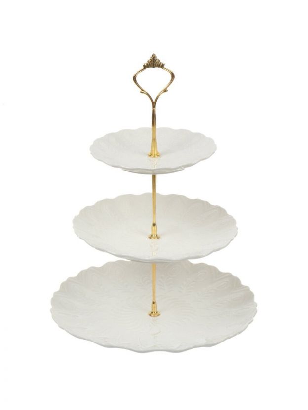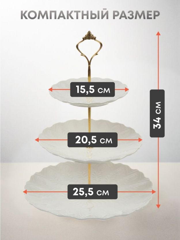 Ваза для фруктов, 3 яруса, керамика, 25.5х2.5, 20.5х2, 15.5х1.5 см, Y4-6315, белая