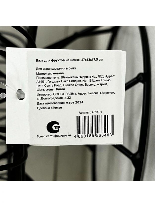 Ваза для фруктов, металл, на ножке, 27х13х17.5 см, Y4-8034, черная
