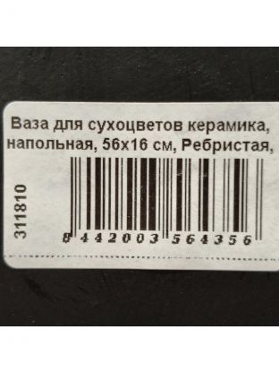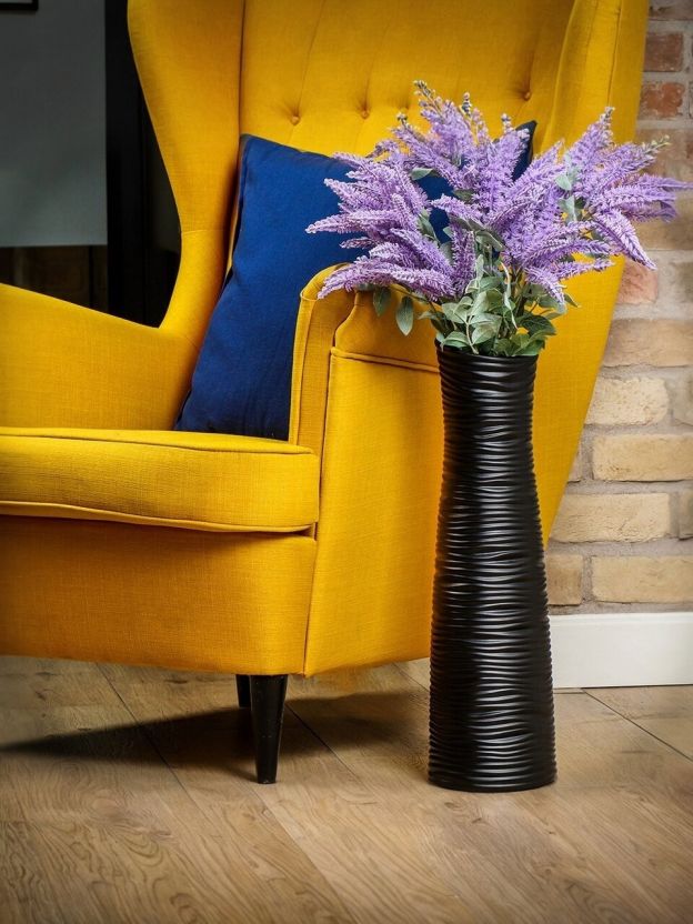 Ваза для сухоцветов керамика, напольная, 56х16 см, Ребристая, JC-11814, черная