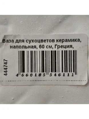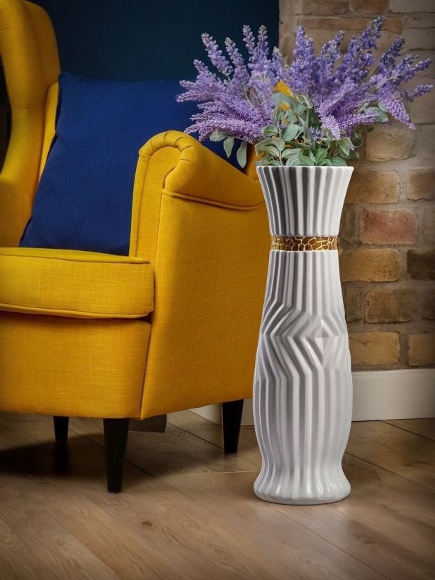 Ваза для сухоцветов керамика, напольная, 60 см, Греция, Y4-7265, белая