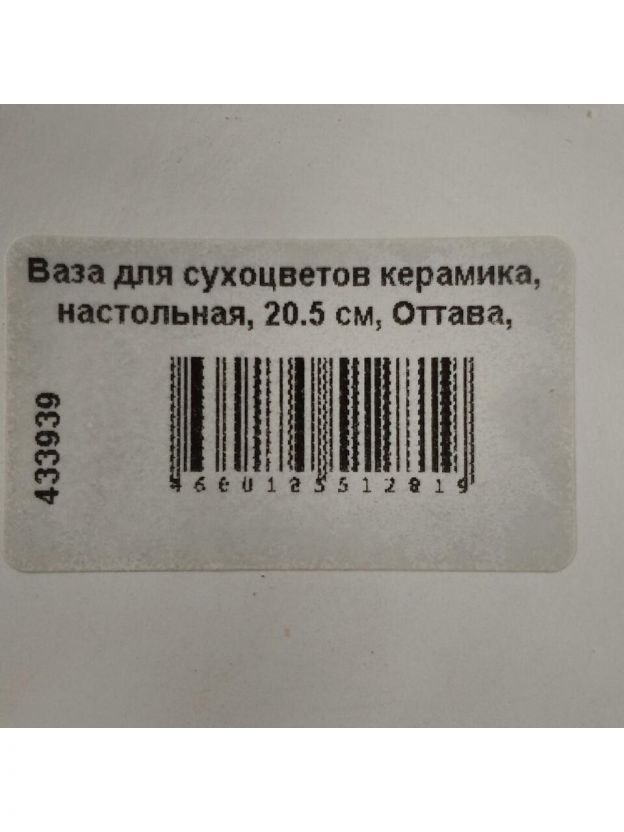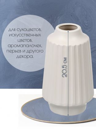 Ваза для сухоцветов керамика, настольная, 20.5 см, Оттава, Y4-6554, белая