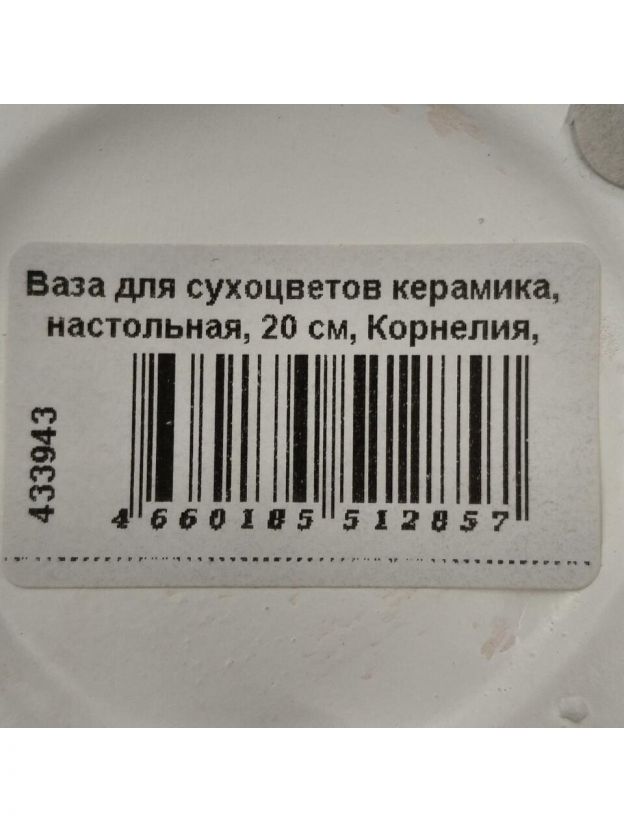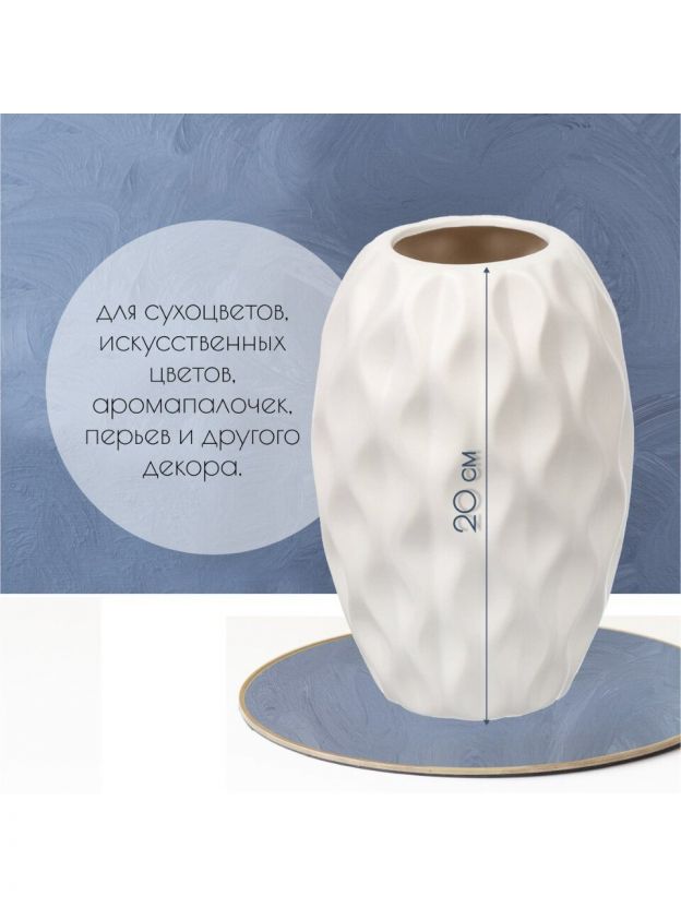 Ваза для сухоцветов керамика, настольная, 20 см, Корнелия, Y4-6558, белая