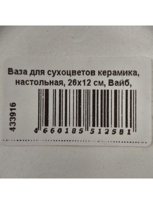 Ваза для сухоцветов керамика, настольная, 26х12 см, Вайб, Y4-6531, белая