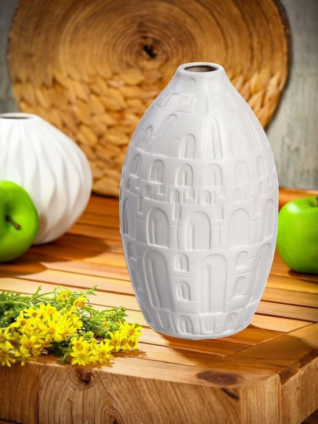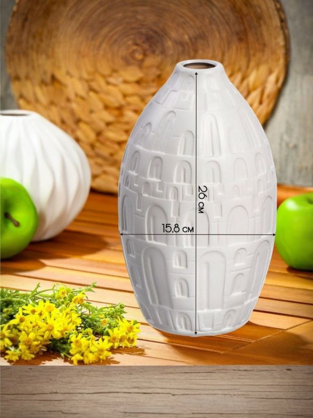 Ваза для сухоцветов керамика, настольная, 26х15.8 см, Город, Y4-7250, белая