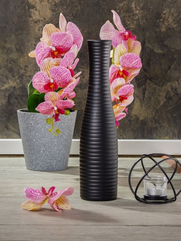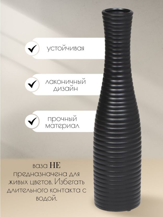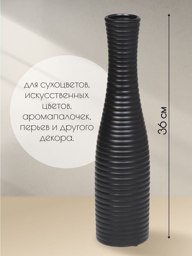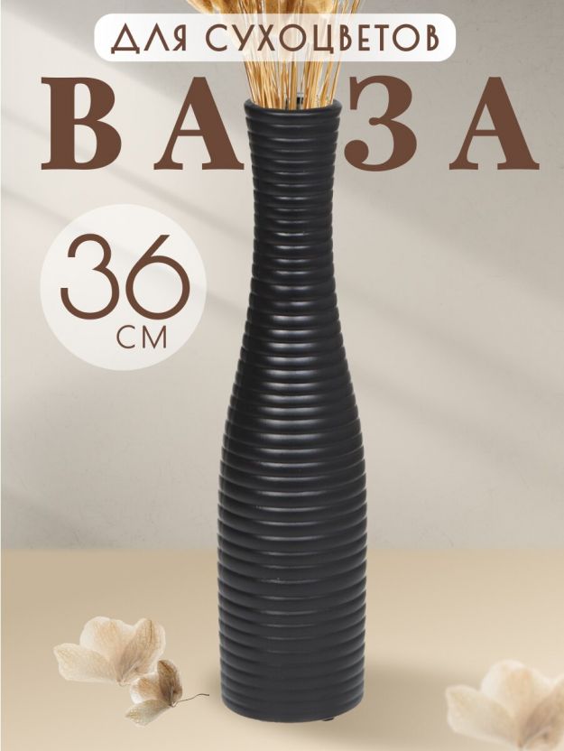 Ваза для сухоцветов керамика, настольная, 36 см, Горизонтальные полосы, черная