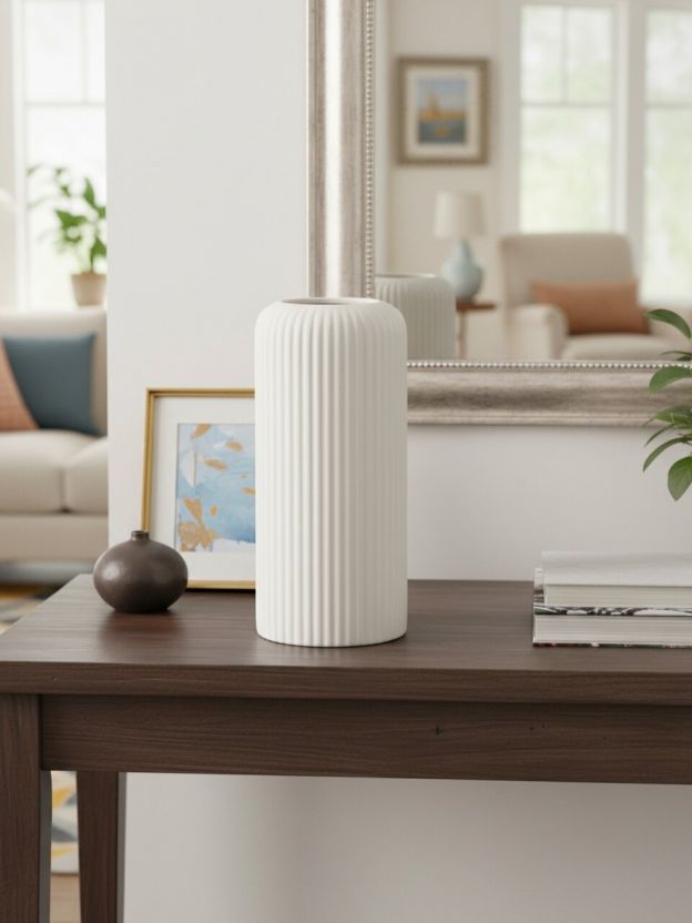 Часто спрашивают, подходит ли такая ваза для свежих цветов или воды. Модель рассчитана именно на сухоцветы и искусственные композиции, так как не имеет дополнительной гидроизоляции. В отличие от стеклянных аналогов, керамика лучше сохраняет внешний вид, не мутнеет и не требует сложного ухода. Как использовать вазу для декора? Просто разместите её на столе, полке или подоконнике — минималистичный стиль гармонирует с любым интерьером.