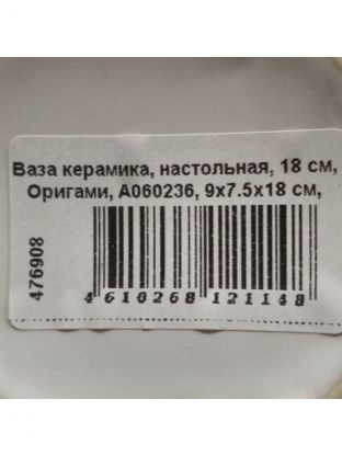 Ваза керамика, настольная, 18 см, Оригами, A060236, 9х7.5х18 см, белая