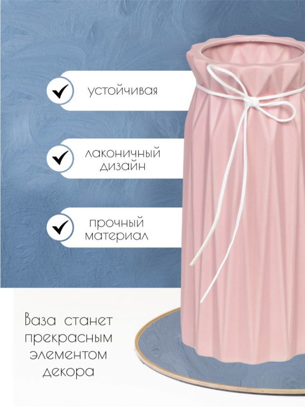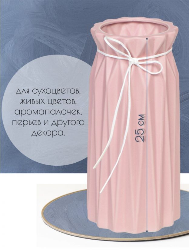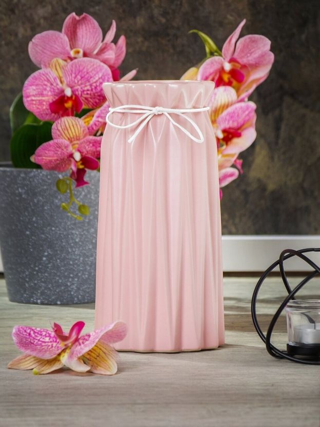 Ваза керамика, настольная, 25 см, Оригами, Y6-2012, розовая