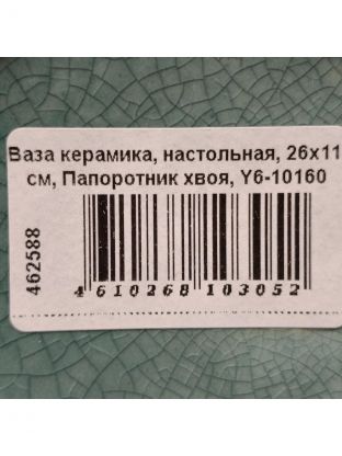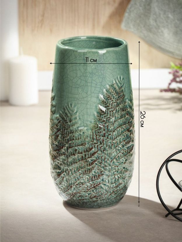 Ваза керамика, настольная, 26х11 см, Папоротник хвоя, Y6-10160/A060097