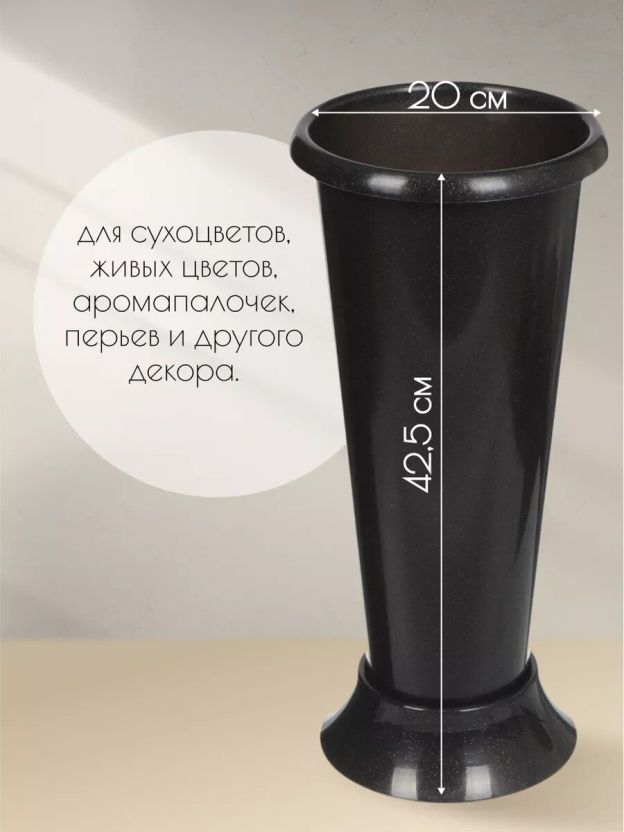 Ваза пластик, напольная, 42.5х20 см, Альтернатива, М6433, черная
