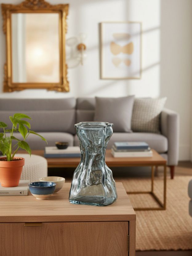Ваза из графитового стекла с эффектом мятой поверхности — актуальный тренд в интерьерном декоре. Благодаря универсальному размеру, она органично вписывается как в минималистичные, так и в классические интерьеры. Часто спрашивают, чем отличается данная модель от обычных прозрачных ваз: графитовый оттенок скрывает стебли и воду, делая композицию более эстетичной. Стекло легко очищается, устойчиво к царапинам и не впитывает запахи, что важно для длительного использования.