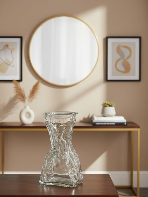 В отличие от традиционных гладких ваз, «мятая» поверхность добавляет тактильности и визуального интереса. Если вы задумываетесь, подходит ли такая ваза для минималистичного интерьера, — да, благодаря прозрачности и лаконичной форме она не перегружает пространство. Как использовать вазу: разместить на рабочем столе, в прихожей, на прикроватной тумбе или оформить праздничный стол.
