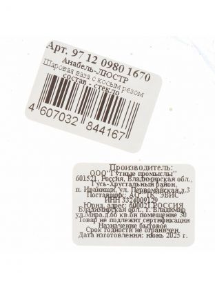 Какой размер у вазы Evis Анабель-ЛЮСТР?