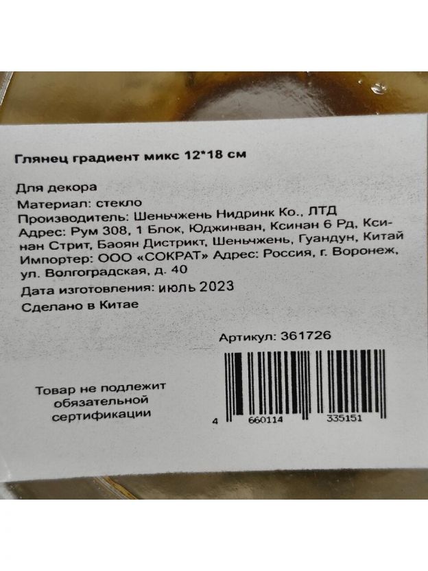 Ваза стекло, настольная, 18х12 см, Глянец, Y4-3839, в ассортименте
