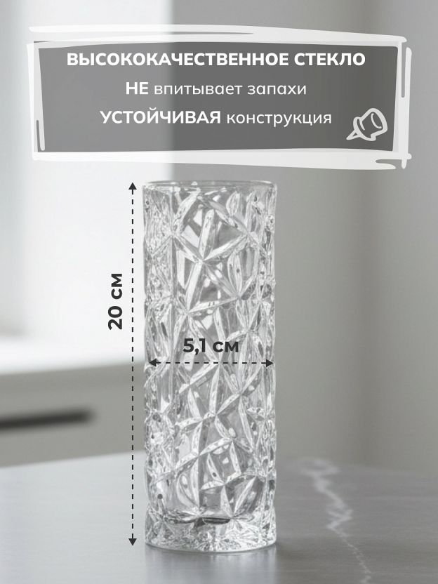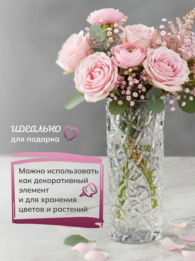 Ваза для цветов выполнена из прочного высококачественного стекла. Ваза сочетает в себе изысканный дизайн с максимальной функциональностью, и не только украсит дом и подчеркнет ваш прекрасный вкус, но и станет отличным подарком.