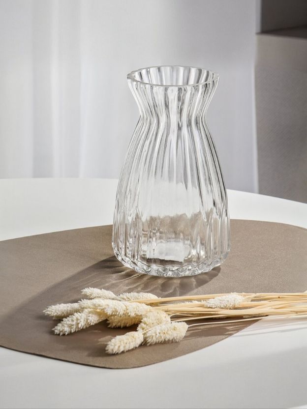 - Универсальный дизайн: прозрачное стекло и широкое горло подходят для любых цветов и стилей интерьера.