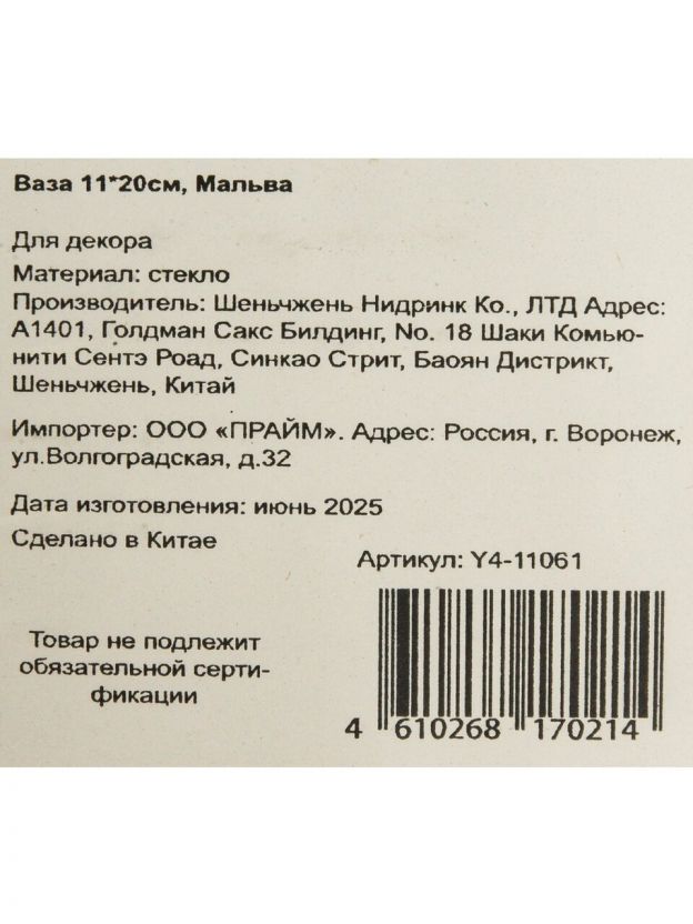 Стеклянная ваза «Мальва» размером 12х20 см — это современное решение для живых цветов, которое гармонично впишется в любой интерьер. Прозрачный материал подчеркивает свежесть букета, а широкое горло позволяет легко размещать мини-композиции или экспериментировать с оформлением. Благодаря бесцветности, ваза не отвлекает внимание от самих цветов, а современная форма делает её актуальной для минималистичного, скандинавского или классического стиля.