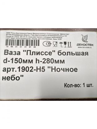 Ваза стекло, настольная, 28х15 см, Декостек, Плиссе Ночное небо, 1902-Н5