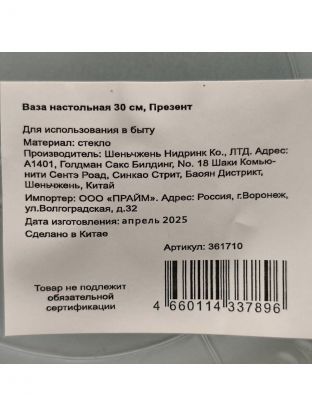 Ваза стекло, настольная, 30 см, Презент, Y4-3823, в ассортименте