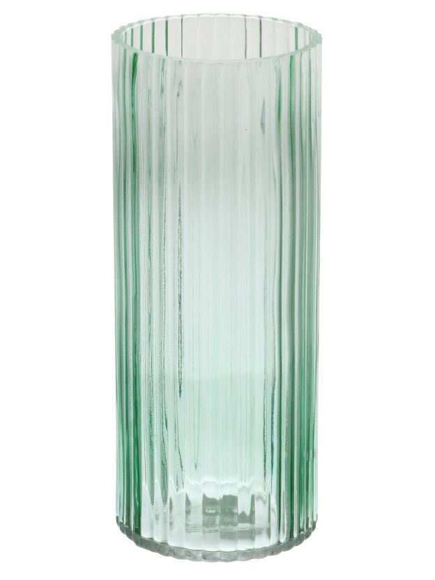 Ваза стекло, настольная, 30х10 см, Цилиндр, Y4-11074, полосы, зеленая