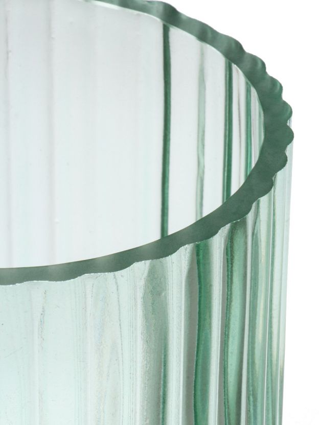 - Современный дизайн: цилиндрическая ваза из тонированного зелёного стекла с уникальным полосатым декором