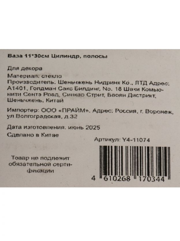 Обратите внимание на высоту (30 см) и диаметр (10 см) — эти параметры идеально подходят для крупных цветочных композиций. Стеклянная модель устойчива и не перевернётся под весом букета.