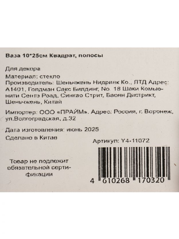 Стеклянная настольная ваза 10x25 см «Квадрат, полосы» — стильный акцент для интерьера, который подчеркнёт индивидуальность вашего дома или станет универсальным подарком.