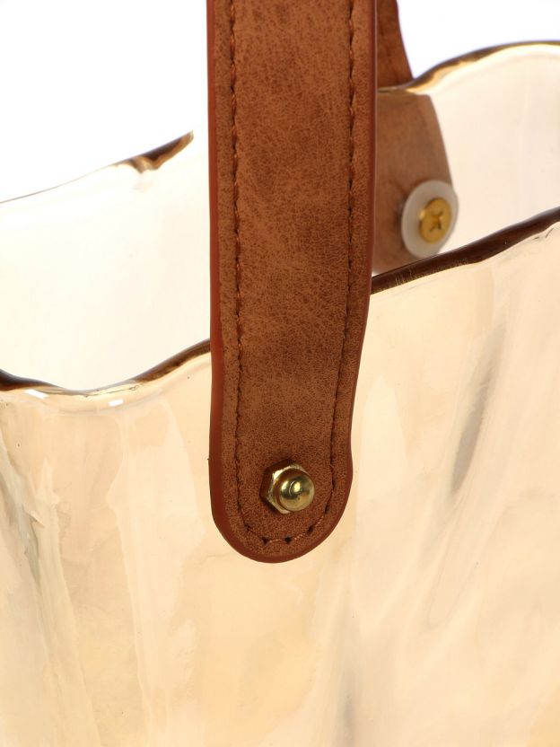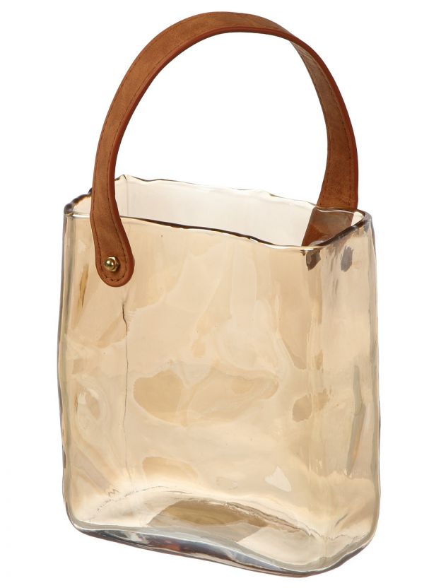 Ваза стекло, настольная, Сумочка, Y4-11051, 18х11х19 см, ручка экокожа, медовая