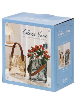 Часто спрашивают: «Как использовать такую вазу?» — она подходит для свежих и сухоцветов, декоративных композиций, а также как самостоятельный акцент. В сравнении с обычными стеклянными вазами, эта модель выделяется оригинальным дизайном и практичностью: экокожаная ручка облегчает перемещение, а прочное стекло устойчиво к царапинам и легким ударам.