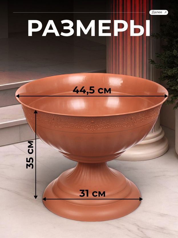 Вазон для цветов пластик, 17 л, 44.5х35 см, коричневый, Альтернатива, Венеция, М 3132