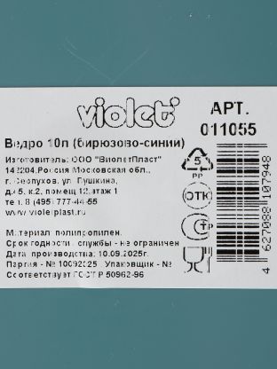 Ведро пластиковое 10 л Violet: удобное решение для дома и дачи, прочный материал, стильный бирюзово-синий цвет. Идеально для уборки, хранения, полива.