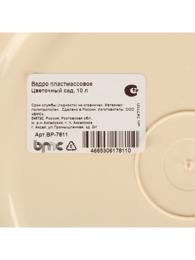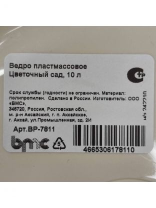 Ведро пластик, 10 л, хозяйственное, ВМС, Цветочный сад, ВР-7811