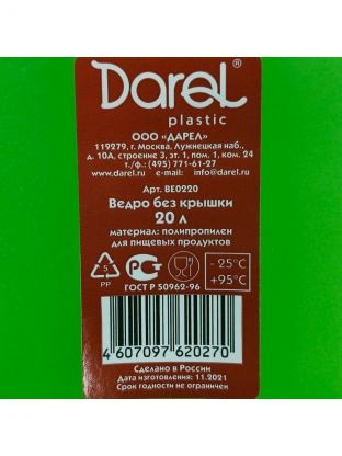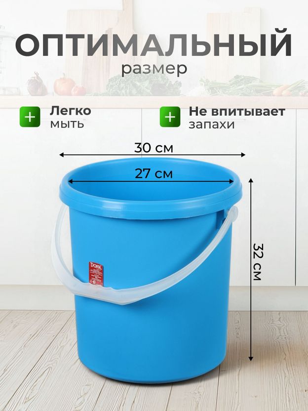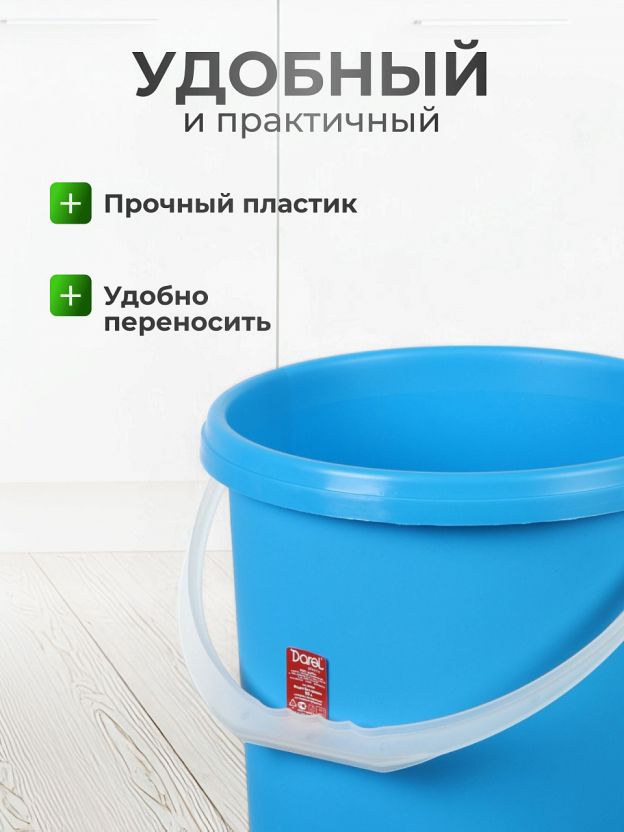 Ведро пластик, 20 л, в ассортименте, хозяйственное, без крышки, Darel, ВЕ0220