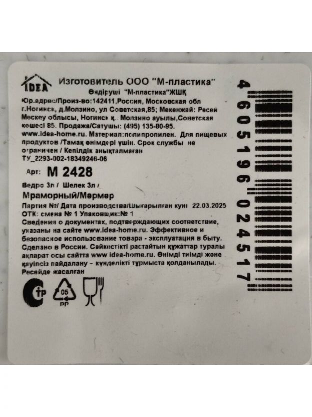 Ведро пластик 3 л Idea М2428 — универсальное решение для дома и дачи: компактное, легкое, с удобным сливом и стильным мраморным дизайном.
