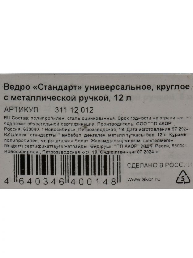Ведро строительное 12 л Акор Стандарт — это практичный выбор для тех, кто ищет надёжный помощник на стройке, в гараже или на даче. Благодаря прочному корпусу из полипропилена ведро устойчиво к воздействию цементных смесей, красок и растворителей, что важно для профессионального использования. Сливной носик облегчает аккуратный перелив растворов и воды, а мерная шкала позволяет контролировать объём без дополнительных инструментов. В отличие от обычных пластиковых вёдер, эта модель оснащена железной ручкой — удобно переносить даже наполненное ведро без риска деформации.