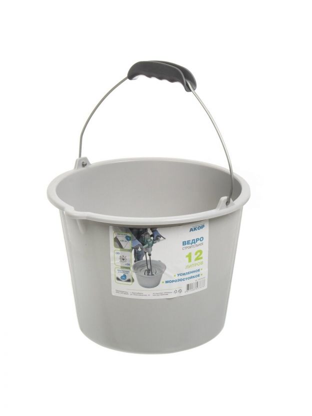 Цвет серый, круглая форма и удобная ручка с накладкой обеспечивают легкость переноски. Подходит для использования в температурном диапазоне от -30 до +30 градусов. Это ведро станет незаменимым помощником в строительных работах.