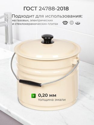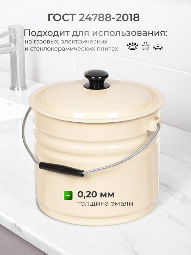В ведре можно готовить пищевые продукты, ведро подходит для использования на газовых, электрических и стеклокерамических плитах.