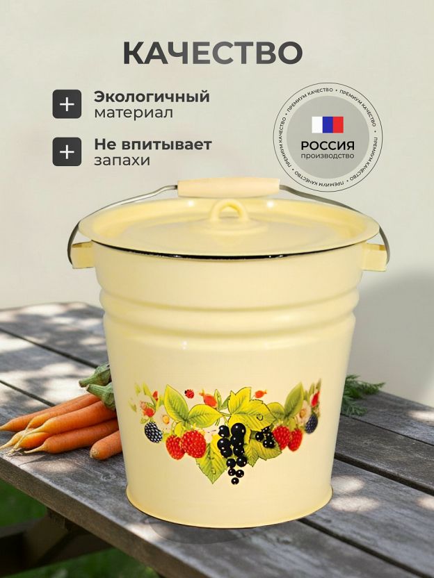 Да, эмалированное ведро 12 л с крышкой от СтальЭмаль подходит для питьевой воды, молока, ягод и других продуктов. Эмаль не взаимодействует с пищей, не впитывает запахи и легко моется. Крышка защищает содержимое от загрязнений.